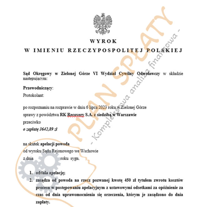 Wygrana apelacja z RK Recovery - dług na 3642,89 zł  anulowany! - Wyrok pierwszej instancji zapadły przed Sądem Rejonowym nie oznacza, że sprawa jest zakończona. Zarówno powód, jak i strona pozwana, mogą bowiem złożyć apelację od niekorzystnego dla s...