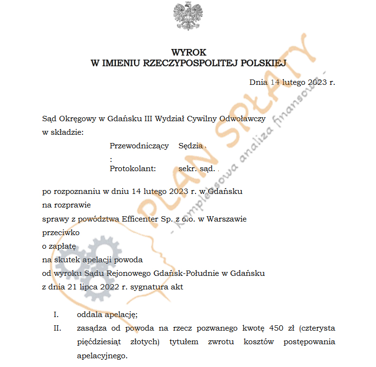- 10. Sąd Okręgowy z Gdańska oddala apelację Efficenter!
