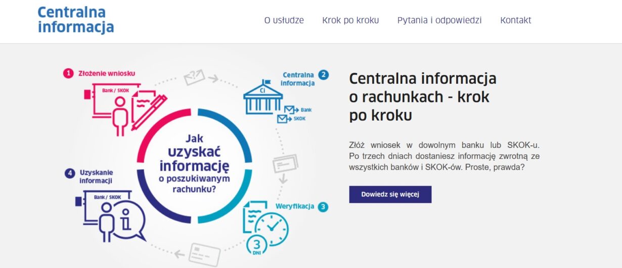 Być może lata temu założyłeś konto w banku, z którego już dawno nie korzystasz. Z pomocą w zlokalizowaniu Twoich rachunków bankowych przychodzi Centralna Informacja o rachunkach prowadzona przez Krajową Izbę Rozliczeniową. Składając wniosek o udostępnienie informacji na swój temat dowiesz się, w jakich bankach posiadasz (lub posiadałeś) rachunki bankowe. Wiedząc, w jakim banku posiadasz otwarty rachunek, w prosty sposób pobierzesz historię rachunku (wcześniej przypominając sobie dane dostępowe – czy to w oddziale banku, czy za pomocą systemu transakcyjnego). Pobrana historia rachunku pozwoli zbadać Ci wpływy na rachunek. Być może część wpływów związana będzie z zawieranymi w przeszłości umowami kredytów, czy też pożyczek. Sprawdź też, czy obsługiwałeś jakieś zobowiązanie i czy z Twojego konta wychodziły przelewy związane z płatnościami rat czy płatnościami za usługi.