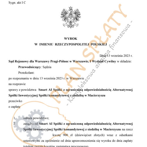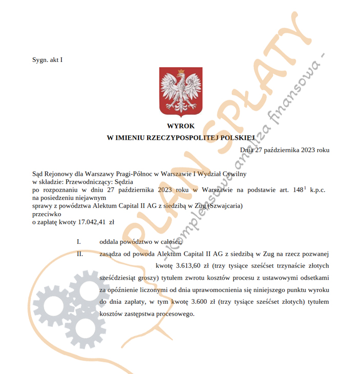 - Alektum Capital II AG – dzięki naszej interwencji udało się skutecznie anulować zobowiązanie przed sądem w Warszawie. To pokazuje, że nasza strategia antywindykacyjna przynosi realne efekty w walce o prawa konsumentów.