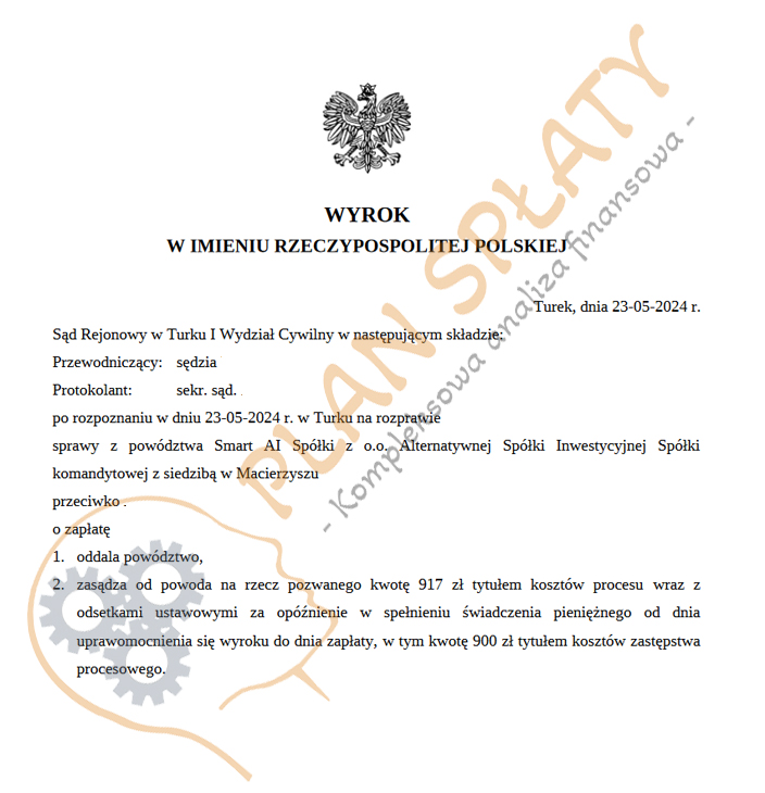 Nasze sukcesy w sądzie przeciw Smart AI świadczą o tym, że starannie przygotowane sprawy oraz profesjonalne podejście mogą znacznie zwiększyć szanse na korzystny wyrok. Specjalizujemy się w skutecznym reprezentowaniu klientów, w sprawach przeciwko firmom, takim jak Smart AI. Napisz do nas, jeśli Smart AI wysłało do Ciebie wezwanie do zapłaty – razem znajdziemy rozwiązanie Twoich problemów.