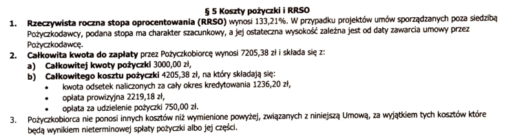 Biorąc pod uwagę Rzeczywistą Roczna Stopę Oprocentowania (RRSO) na poziomie 133,21%, można stwierdzić, że jest to poziom kosztów bardzo wysoki w porównaniu do przeciętnych pożyczek konsumenckich dostępnych na rynku. Wysokość RRSO wskazuje na to, że koszt kapitału jest tu bardzo znaczący i może stanowić znaczne obciążenie dla budżetu pożyczkobiorcy.