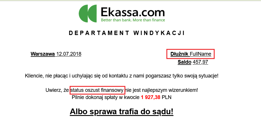 Kierowane przed windykację Kruk wezwania do zapłaty będą cechować się starannością w zredagowaniu. Całkowicie odmienną metodę windykacji swego czasu miała Ekassa, która uczyła się od najlepszych i nazywała dłużników oszustami finansowymi, a przy okazji zapominała wskazywać na poprawne imię oraz nazwisko adresata wiadomości.
